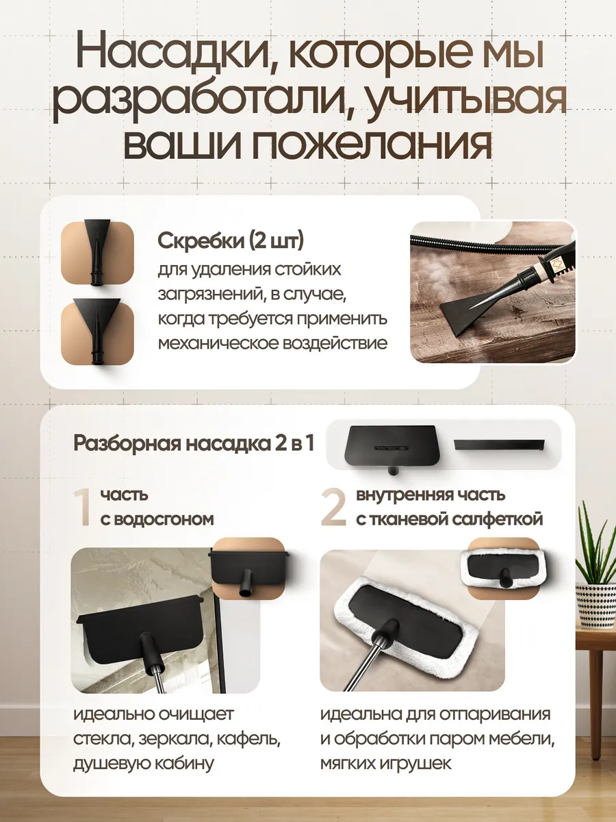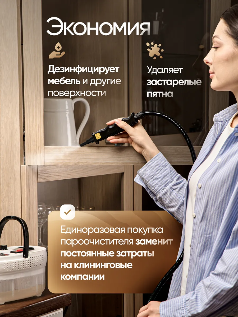 Мы предлагаем по-настоящему универсальный и эффективный прибор для уборки: для кухни, ванной, окон, мягкой мебели и даже автомобиля. Идеально подходит для очистки любых поверхностей без химических средств! Этот прибор станет вашим верным помощником в борьбе за чистоту и уют!