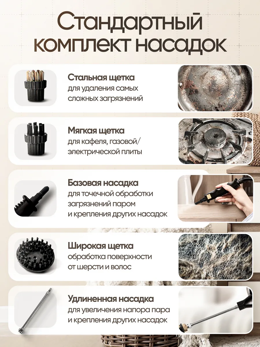Видела аналоги в магазинах дороже, заказала здесь и не пожалела! Прибор мощный, уборка стала занимать меньше времени. Отлично очищает плитку в ванной и освежает обивку дивана. Идеальный выбор для тех, кто ценит чистоту и комфорт!