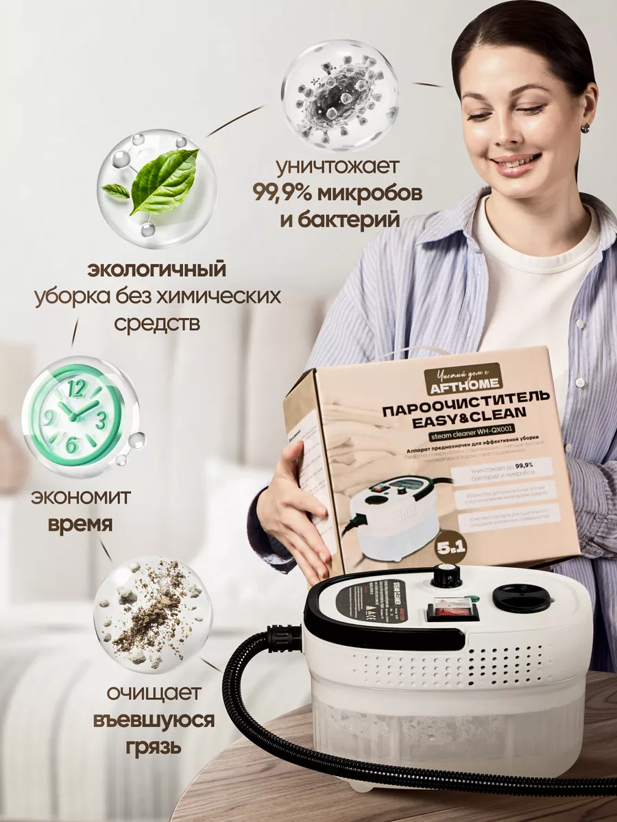 Пароочиститель сэкономит ваше время и деньги на дорогостоящей химии. Благодаря мощному паровому давлению вы легко очистите застарелый жир и налет, а паровая дезинфекция гарантирует чистоту и безопасность для здоровья вашей семьи и домашних животных!